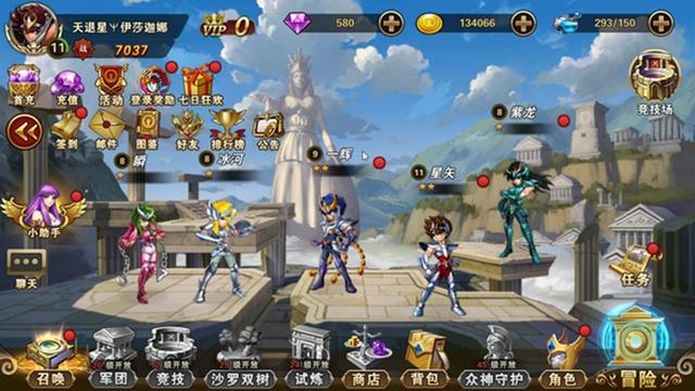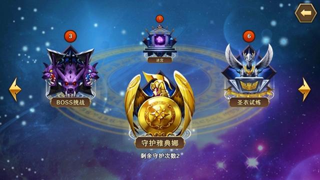 说到游戏的特色内容,就是宣传所称的守护雅典娜、圣衣试炼、沙罗双树、BOSS挑战、随机迷宫、圣斗士军团之类了。除了军团是常见的公会玩法,其他或多或少谱有新意。守护雅典娜一共包括20波敌人,每战胜一波敌人将会获得数量不等的金币,全部通关的奖励非常丰厚。圣衣试炼可以挑战各种难度的特殊关卡,搜集圣衣碎片,不过圣衣整体比较稀缺,提升难度大,搜集一套更是费心,属于比较后期的玩法。沙罗双树属于抢占资源的挖矿玩法,除一般内容外还可以发布悬赏令。BOSS挑战即BOSS单挑,特点是难度等级非常多,且每天对应不同的BOSS。随机迷宫属于周日常,玩法有点类似传统日式RPG的踩地雷,随机遭遇boss、宝箱、精英等,考验战力和运气。