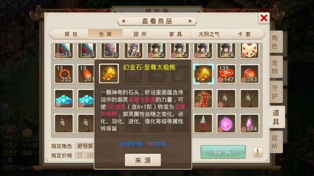 最后在瞅了眼背包里面,看到这个角色居然有幻金石·至尊太极熊,这一下就把这个角色价值提了不少了,小鹿也看了不少角色了,这个至尊太极熊还是很少见的。