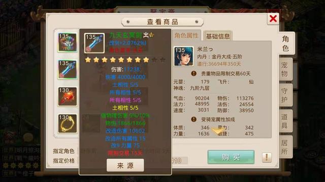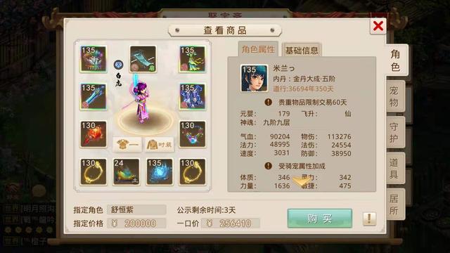 首先看一下这个女水的面板,既然修仙问道,那么道行必不可少,这个135女水有3.6万年的道行,神魂九阶九层,裸物伤有11.3万,速度有3031。