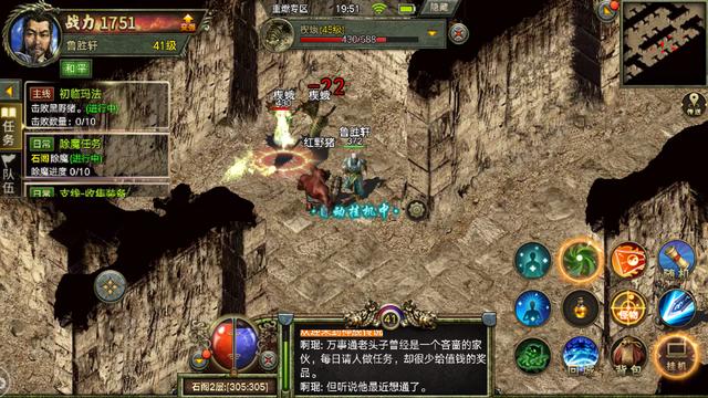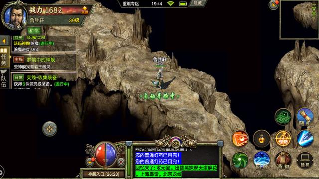 完成30级主线任务后,会再次卡等级,表示下一个主线任务只能在35级之后执行。这时,我们可以再去练功房升级等级,也可以做支线任务,收集5件沃玛级装备。装备可以通过打宝获得。点击右上角的菜单栏可以看到打宝地图。请选择沃玛神殿,当然氪金的小伙伴可以通过寻宝获得装备,也可以通过拍卖行购买装备。