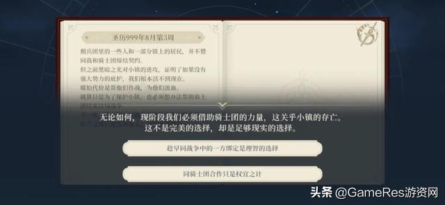 虽然不可避免地会出现重复体验的游戏内容,但极心社还是做了多手准备来避免玩家陷入倦怠期,由选项导致的资源、挑战差异就是其中之一。举例来说,玩家在游戏中如果选择与骑士团交好,那么骑士团就会增援铃兰小镇,在装备、人员等方面提供独特内容。
