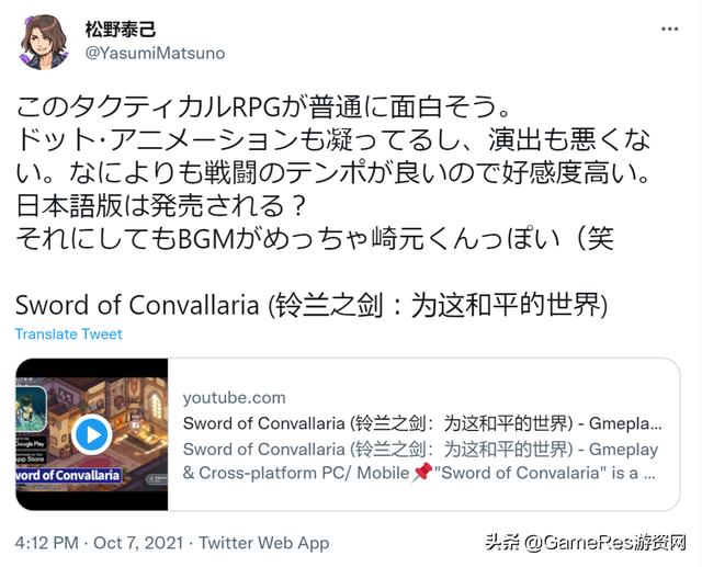 针对《铃兰之剑》的战棋玩法,知名战棋游戏制作人松野泰曾做出高度评价:“像素动画做工细致,演出精彩。最重要的是,游戏的战斗节奏把握很好。”