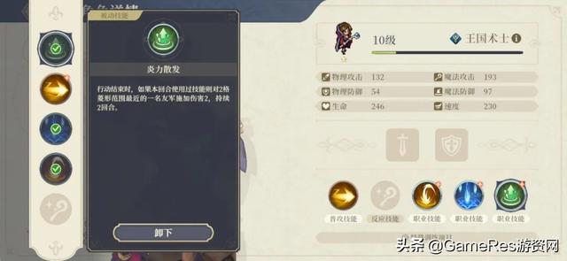角色每次出战、派遣都会消耗10%体力,游戏还将角色在战场上被击败与角色体力挂钩,以40%的体力消耗取代减轻传统战棋永久死亡的惩罚