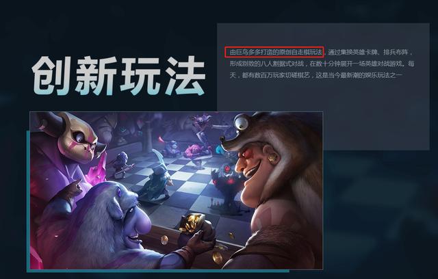 自走棋手游之前所做的一切,看似臭棋,其实从官方网站宣传语言就能看出来。\'原创玩法\'四个字看起来有些幼稚,却又是声嘶力竭的呐喊。只不过大环境对四个字并不利,玩法本身就没有一个统一的衡量标准。在我看来3D的所有游戏都是基于一个视角,只是换了皮,所有的3D视角游戏都是抄的魔兽世界,狗头保命。