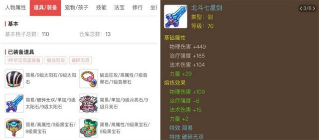 这名玩家看中的角色实力非常强悍,不仅法宝达到了满级,而且装备方面也很不错,身上共拥有5件70级的简易装备,并且还有两个实用的特技,其中项链所携带的是破血狂攻特技,能够对敌方单体目标发动两次物理攻击,是物理门派玩家梦寐以求的“神技”;而武器拥有的是破碎无双特技,在攻击敌方单体目标时,同时减少魔法值,在战斗中一刀空蓝能够让对方叫苦不迭。其余的装备虽然没有特技加持,但也都是高属性,并搭配了9级宝石,对人物属性提升巨大。