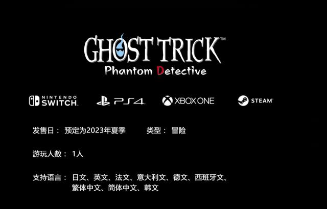 经典的解谜神秘冒险名作回来了!《逆转裁判》系列作者巧舟所制作的《Ghost Trick: Phantom Detective》,将推出期待已久的高清重制版。由负责《大逆转裁判》BGM 的人气作曲家北川保昌对原版乐曲进行的完全同步编曲,即使在游戏过程中亦可以在不中断歌曲的情况下更改歌曲版本。此外,还有插画集和 BGM 集等新追加内容,今晚即将复活!--------------某一夜。在城市的某个角落,主角被一颗子弹杀死。主角作为亡灵苏醒,意识到他连同生命一起失去了记忆。我是谁?我为什么被杀?杀我的人的身份是什么?…… 而赋予我的 "死者之力" 又是什么意思……?魂魄湮灭的时限,是明天早上。主角只限一夜 "孤独的追踪剧" 现在开始!线索是一位目睹了主角 "死亡" 的女侦探……
