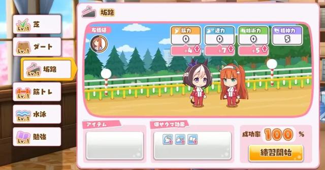 为此,游戏引入与大多日式RPG类似的养成、进阶、突破等系统,玩家需要对角色进行一系列的养成。每次竞赛前会有数周的时间,需要玩家去设定好训练任务,针对角色不同的属性,进行速度、耐力、力量、智慧等数值进行训练,同时部分数值也可利用游戏中的继承机制交给新入手的角色。