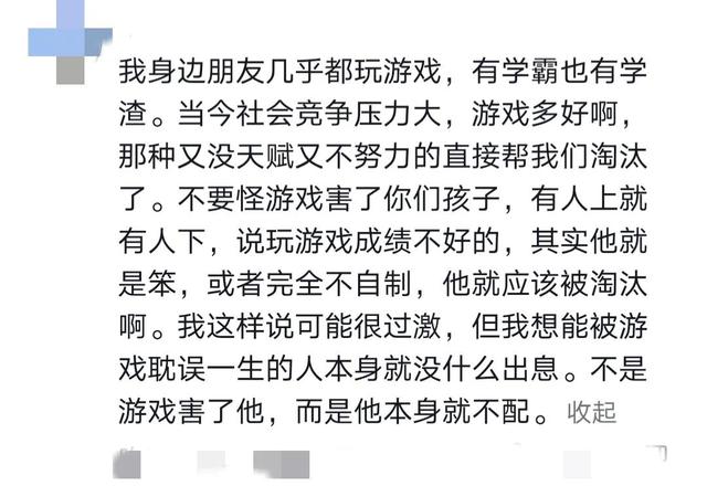 这一位家长更是,手拿牌子,上面印着“网络游戏就是精神鸦片”这离离原上谱啊!网络游戏惹你们啥了?甚至有些网友评论: