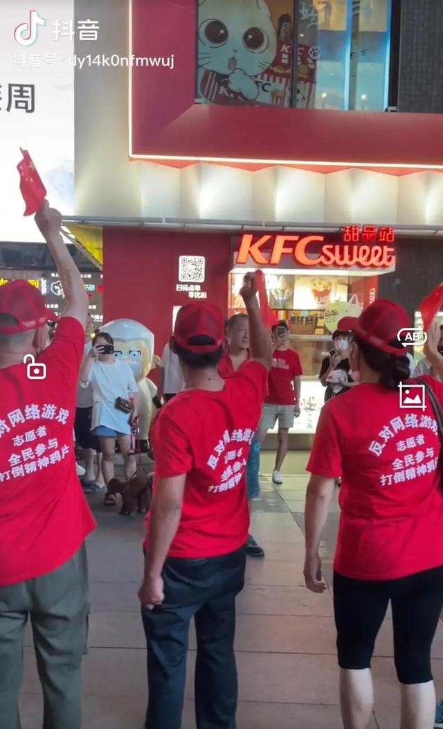 家长们穿着红衣服,声称,所谓的“志愿者”抵制游戏