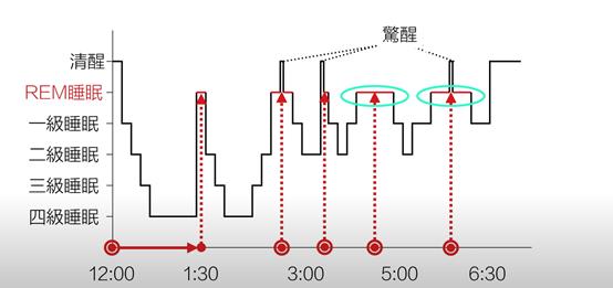 如果你在十二点准时睡着,那么这几个睡眠期的梦应该是以下图表的这几个时间段。