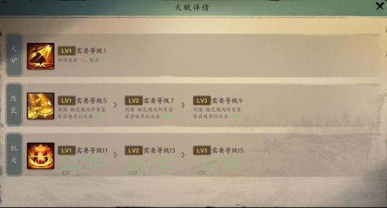 兵家技能——火附(地形法术)、挑拨(定身法伤)、离间(辅助法伤)、谣言(意志专攻)戟盾技能——断筋(定身辅助)、回天(自奶续航)