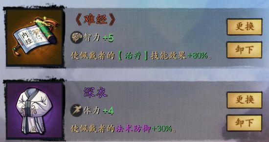 必带挑拨,自身释放恢复意志同时上定声debuff,配合端木曦进行输出。回天、包扎提供自身续航能力,选配火附、离间、谣言等功能性辅助法术作为填充。