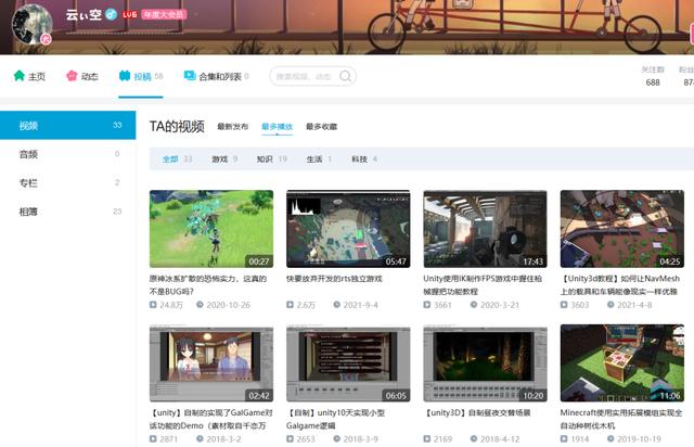 点进弹幕互动游戏《星球大战》开发者云ぃ空的视频主页,你会发现他其实算得上一个“经验丰富”的游戏开发者,从他的过往动态中,你能找到他曾经创作FPS、Galgame与RTS游戏的身影。