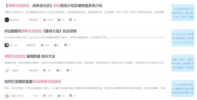 去B站输入“弹幕互动游戏”进行搜索,你能看到的绝大多数视频都会是创作者开发记录而非直播切片,这是因为这个结合了游戏与直播的新玩意儿,依旧在成长的初期。