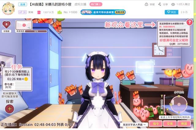 再往后一点,随着虚拟主播热潮的到来,各个平台也出现了可以用弹幕操控“真·AI”主播,虽然互动指令少得可怜,但靠007全年无休的直播时长也算有点热度。