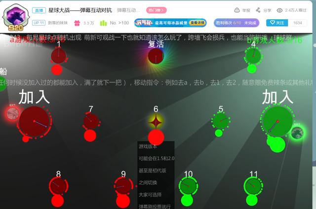 又退出,终于找到一个叫“星球大战”的直播间,外星人欣喜若狂,没想到进去又是一推人在用弹幕在玩只有色块和数字的简陋攻防小游戏。