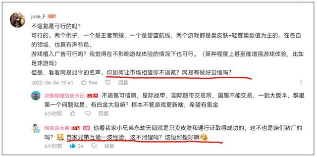 看到玩家还是不信,玩家表示“不相信网易有这样的觉悟”,《逆水寒》手游更是搬出了自家小兄弟《永劫无间》当救兵:“同样是网易猪厂出品的永劫无间就是只卖皮肤和通行证取得成功的,自家兄弟互通经验,非常合理。”