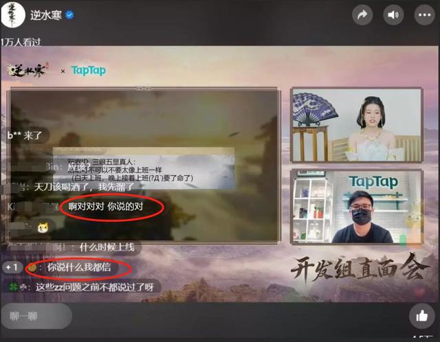 6月15日,在逆水寒手游与TapTap联合举办的开发组答疑活动中,被玩家称为是杭州滨江“赵露思”的逆小寒,就再一次回答了Tap编辑的疑问:“你们说的不肝不氪是真的吗?”