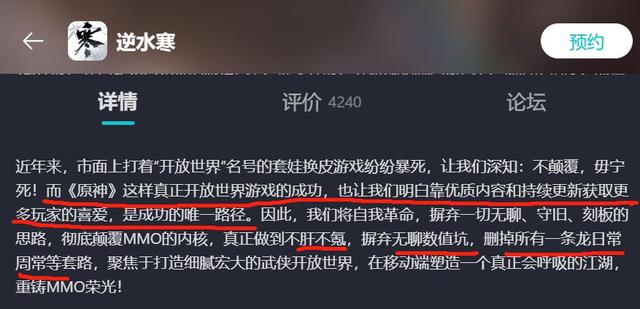 于是《逆水寒》手游官方涨红了脸,额上的青筋条条绽出,争辩道“开发游戏花费6.4亿也是要盈利的”、“轻度卖数值的怎么能叫逼氪呢?” 接连便是难懂的话,什么和品牌方冠名权洽谈的议价已经来到2000万量级,什么一年通过广告也能赚1.4亿,引得众人都哄笑起来:游戏圈内外充满了快活的空气。