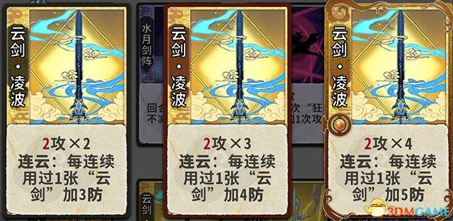 连云:上一张使用的牌名字里还有云剑,此牌就能触发连云效果。