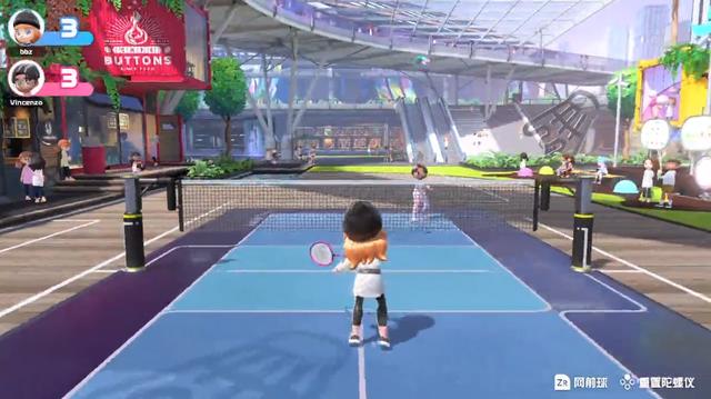 而在线联机分为随机匹配和好友对战,均支持2人操作一台机器进行联机,例如网球的2V2对战。