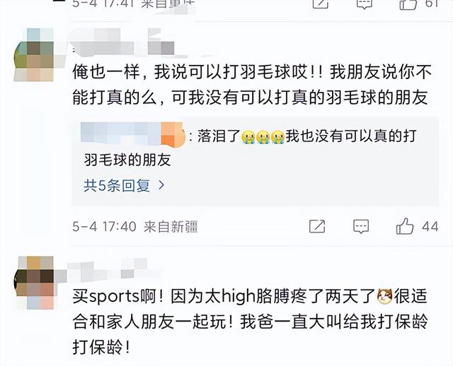 由于羽毛球、网球占用的场地最小,所以二球又成了大多数任天堂玩家五一居家的运动首选。由于该项目不太需要用到玩家的腿部,所以大部分国内玩家都将平日里上班生活的怨气,发泄到了自己的上肢上,所以就出现了开头我基友的那幕。