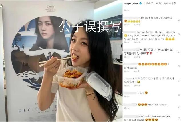 汤唯的吃宫保鸡丁微博博文(下图)