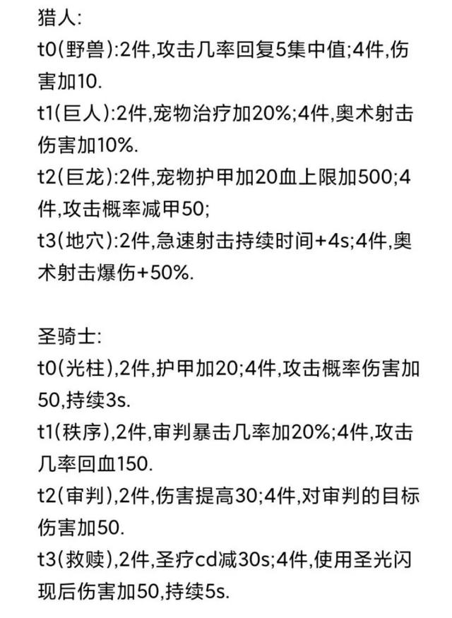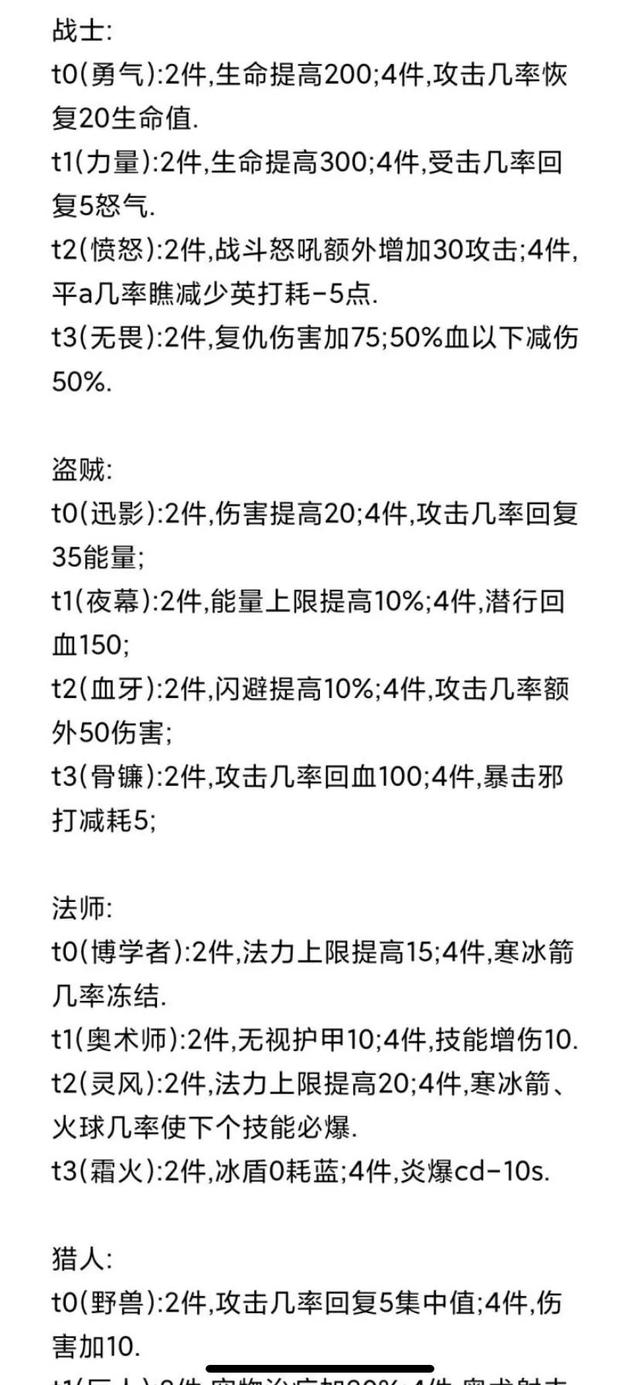最后就是套装和属性方面了,装备的强化,词条的转换和洗练都是在背包界面完成的,具体需要穿什么装备不同的职业也有不同,我在下图会贴出大神总结出来的一个概况,大家可以参考下。