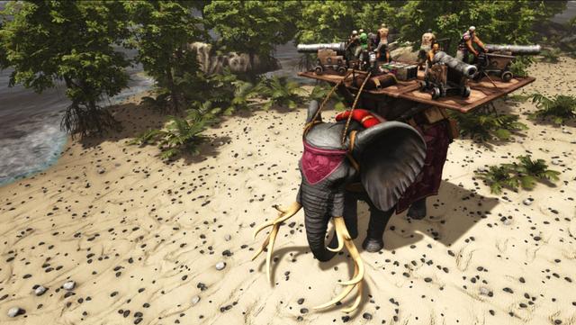 但是大炮很重,难以移动,这时候就可以巧用大象这种生物。将大象装配上平台鞍之后,每一只大象就是一个移动炮台。平台鞍上能够放置八个结构单位,除了放大炮之外,玩家自己也可以骑乘在大象上,在大象脊背上操控大炮。不知道大家在《ATLAS》是否打造过大象炮队呢?来评论区说说吧。