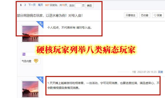 可是有不少仍然执着于追求战力养成的硬核玩家却认为,目前的游戏生态,已经严重影响了自己的游戏体验,很多女玩家的行为,已经可以用病态来形容了,甚至以古风武侠端游《逆水寒》为例,罗列出了八种网游圈的病态玩家种类。